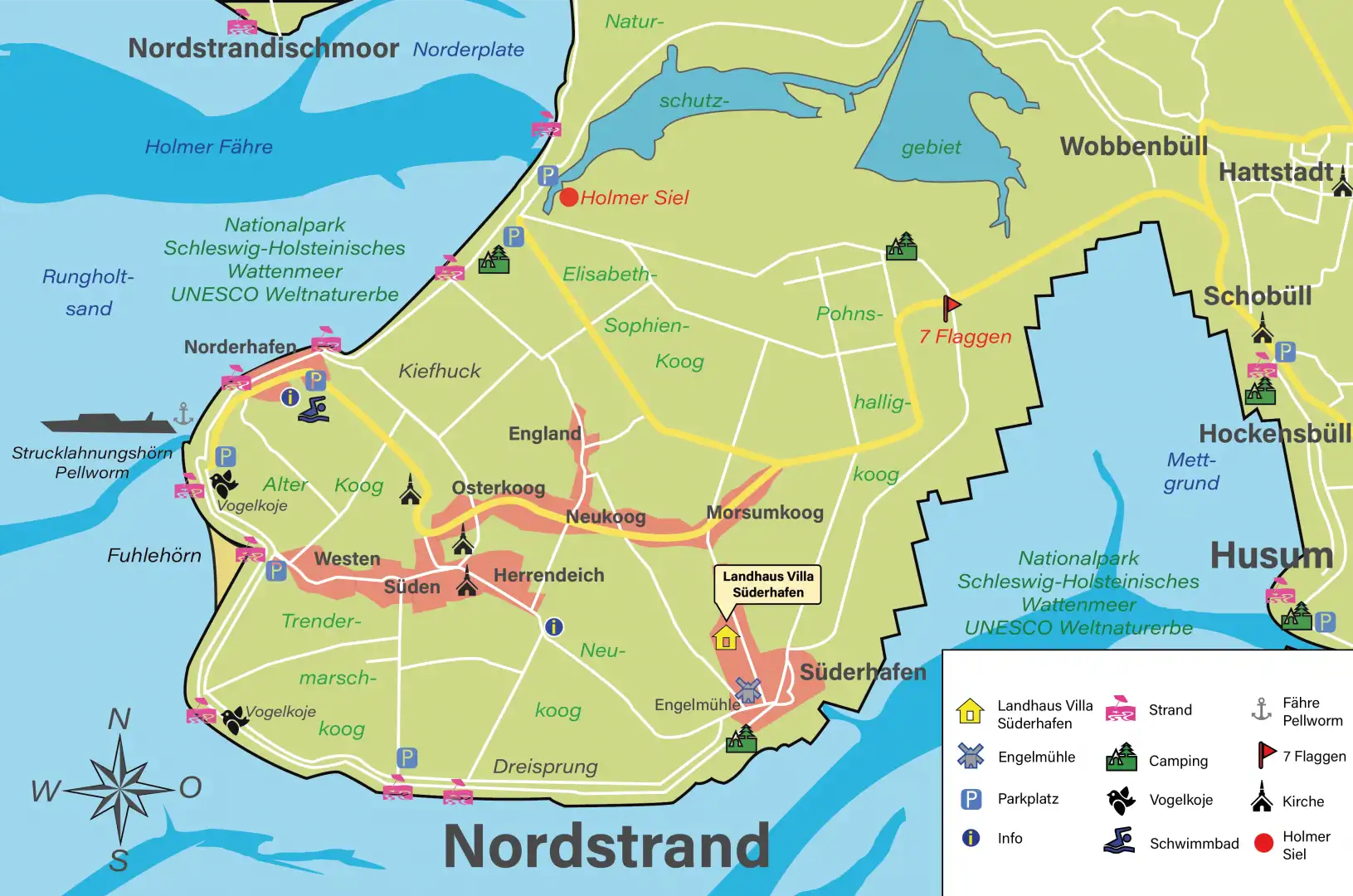 - Nachdem sie über den Nordstrander Damm gefahren sind folgen sie der Ausschilderung Süderhafen, biegen sie links in die Hammchaussee ab